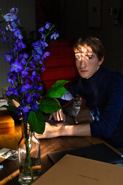 Jordan Weitzman’s first monograph Participation is a riot of off-kilter perspective and weird synchronicities, a book of photography where people, places, and things casually tangle up into beautifully baffling configurations. Through the power of close observation, Weitzman captures the world at a slant where naked bodies form sultry architecture and everyday clutter assembles into fine art. Complimented by a Louis Fratino dust jacket of half-etched figures and mysterious symbols, the book’s sequence is intimate and playful while never spelling itself out. Participation is the product of the photographer fully embedding in his circumstances and locating with an exacting compositional eye where the goofiness and boredom of everyday life drift into formal complexity and undefinable emotional states. The title is an invitation as much as it is a challenge, not only descriptive of Weitzman’s willingness to get in and meet his subjects head, waist, or side-on but for the viewer to crane their neck and pick apart his gorgeously twisted poetry of the strange ways people come together.